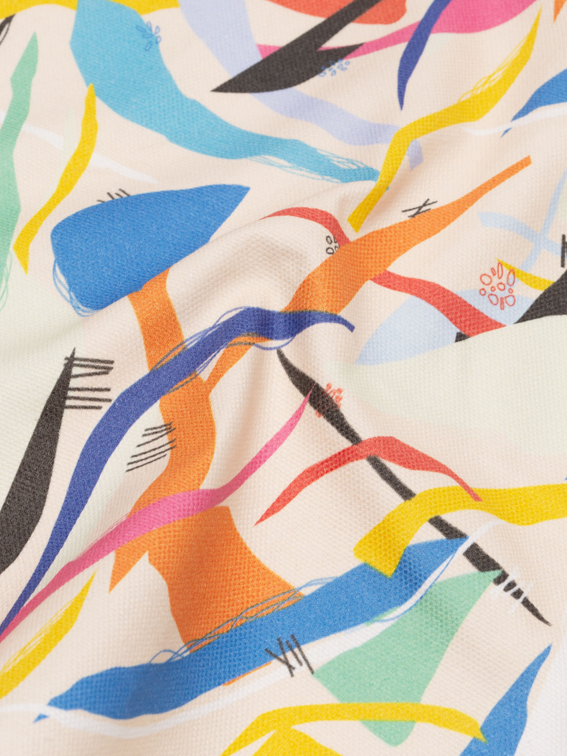 Lines are printed in great detail, with sharp edges and fine detailing as a result of our pigment printing. As this is an uncoated organic fabric, colours can tend to be slightly muted but true to tone because of the stark white background. In solid blocks of colour you are likely to be able to see the surface texture, giving your print an authentic rustic aesthetic.