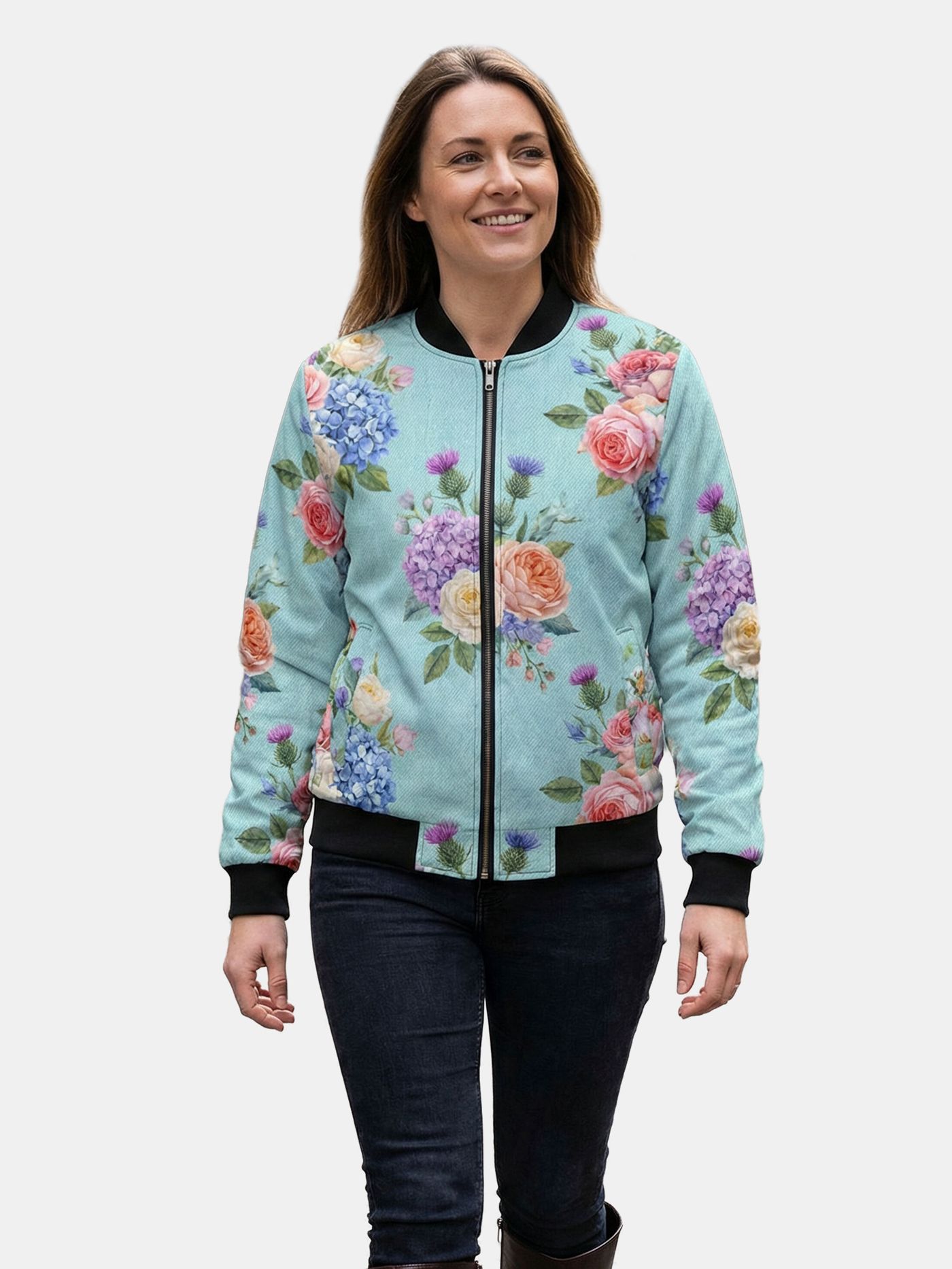 Each Denim Bomber Jacket Women's is handcrafted in our studio, showcasing our commitment to the best quality and craftsmanship. Printed using eco-friendly reactive inks, it boasts vibrant, long-lasting colours that maintain their brilliance, while the level of detail and all-over printing techniques we employ ensure an exceptional finish. Sustainable production processes underscore our dedication to the environment, making this jacket not just stylish, but also responsibly made to order.Logistics